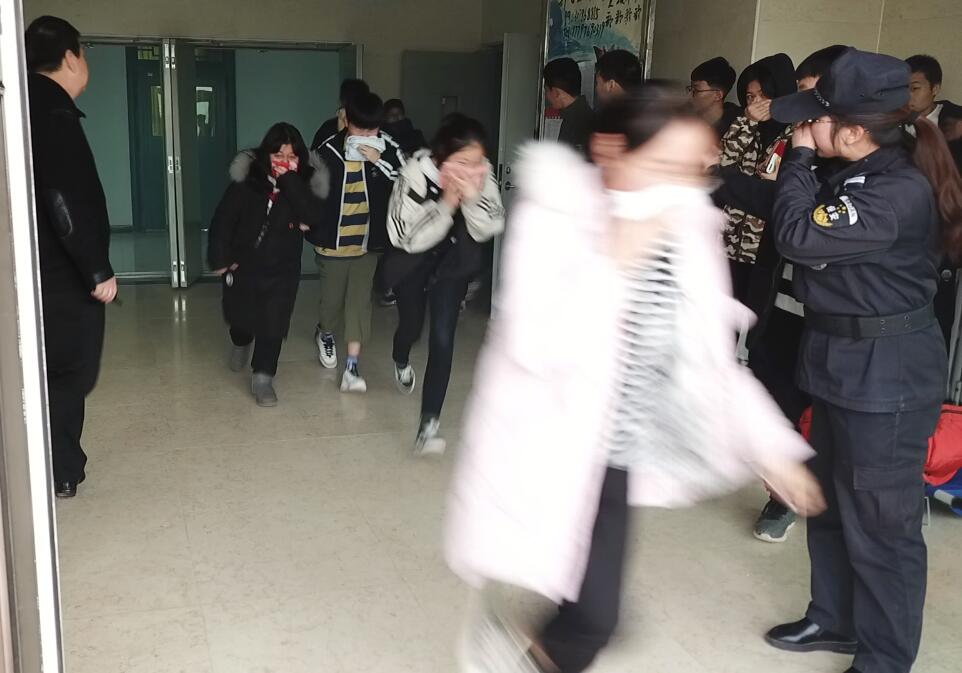 在劉生肸同志一聲令下,各項(xiàng)演練活動有序展開。演練內(nèi)容由學(xué)生逃生自救疏散、消防設(shè)備應(yīng)急保障、滅火器材使用方法、滅火器材體驗(yàn)操作等項(xiàng)目構(gòu)成。其中學(xué)生逃生自救疏散演練項(xiàng)目比較真實(shí)地模擬了火災(zāi)突發(fā)現(xiàn)場,同學(xué)們用濕毛巾捂住口鼻,由教學(xué)樓及公寓各樓層的安全員迅速組織疏散。整個疏散過程緊張有序、實(shí)用性強(qiáng),收到了預(yù)期效果。