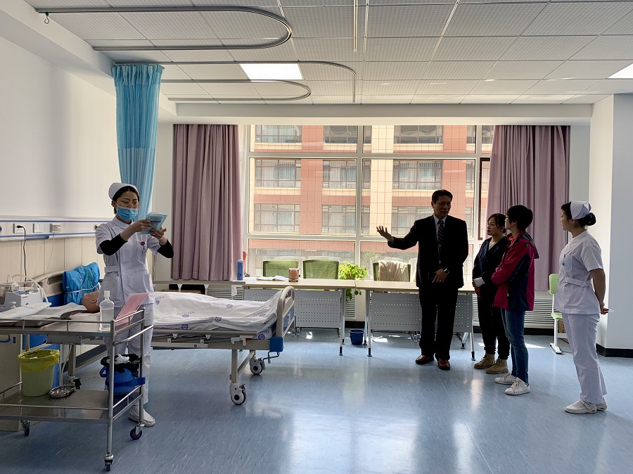 會后,副處長葉金麟一行、副校長蔡世杰一行在王鳳麗副校長的陪同下,參觀了臨床護理學院與中醫(yī)藥學院。
