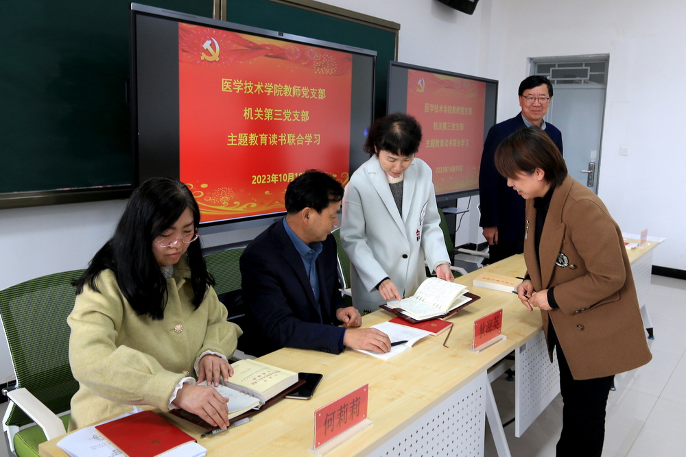 為持續(xù)推進(jìn)學(xué)習(xí)貫徹習(xí)近平新時代中國特色社會主義思想主題教育,提高學(xué)習(xí)效果, 10月18日下午,醫(yī)學(xué)技術(shù)學(xué)院教師黨支部、機關(guān)第三黨支部聯(lián)合開展學(xué)習(xí)貫徹習(xí)近平新時代中國特色社會主義思想主題教育學(xué)習(xí)活動。