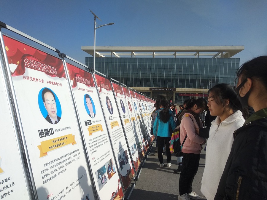 11月18日-19日, 甘肅省教育廳主辦的甘肅省優(yōu)秀教師先進(jìn)事跡巡展在學(xué)校體育館門前舉行。為深入宣傳隴原優(yōu)秀教師的先進(jìn)事跡,大力弘揚(yáng)新時(shí)代尊師風(fēng)尚,發(fā)揮優(yōu)秀教師的模范榜樣作用,教務(wù)處組織全校師生對(duì)展覽進(jìn)行了參觀學(xué)習(xí)。