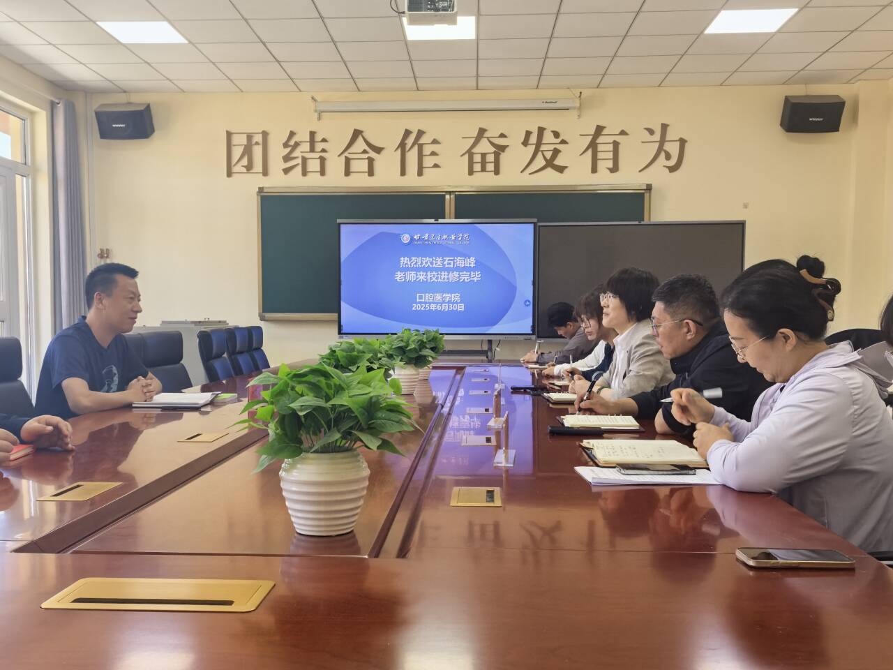 6月30日上午,口腔醫(yī)學(xué)院為天水市衛(wèi)生學(xué)校進(jìn)修教師石海峰舉行歡送座談會(huì)。學(xué)院領(lǐng)導(dǎo)班子成員、口腔醫(yī)學(xué)技術(shù)教研室專職教師及實(shí)驗(yàn)員共同出席,為石老師的進(jìn)修學(xué)習(xí)畫上圓滿句號(hào)。