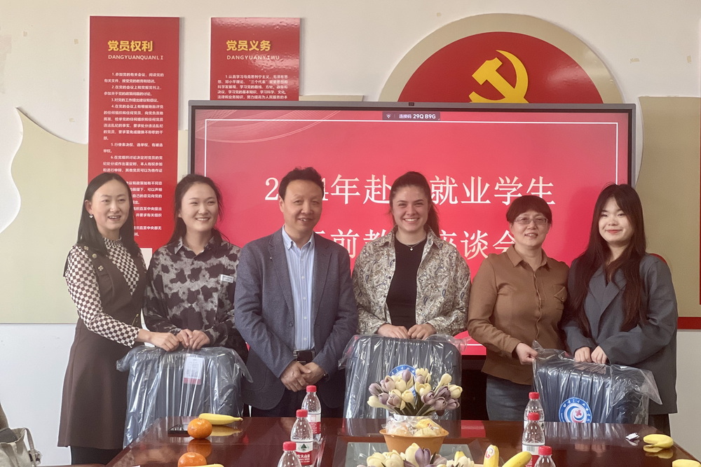 周麗鳳主任做了行前教育,她對赴日學(xué)生提出了三點要求,一是希望大家在漫長的異國旅程中務(wù)必保持清醒的政治頭腦,通過赴日就業(yè)的機會提升自我;二是希望大家維護自身的人身安全、心理健康,遇到困難及時向中國駐當(dāng)?shù)厥梗I(lǐng))館、華人團體等組織及同胞尋求幫助;三是希望大家關(guān)注個人提升與發(fā)展,增強本領(lǐng),學(xué)成歸國后回饋母校、報效祖國。