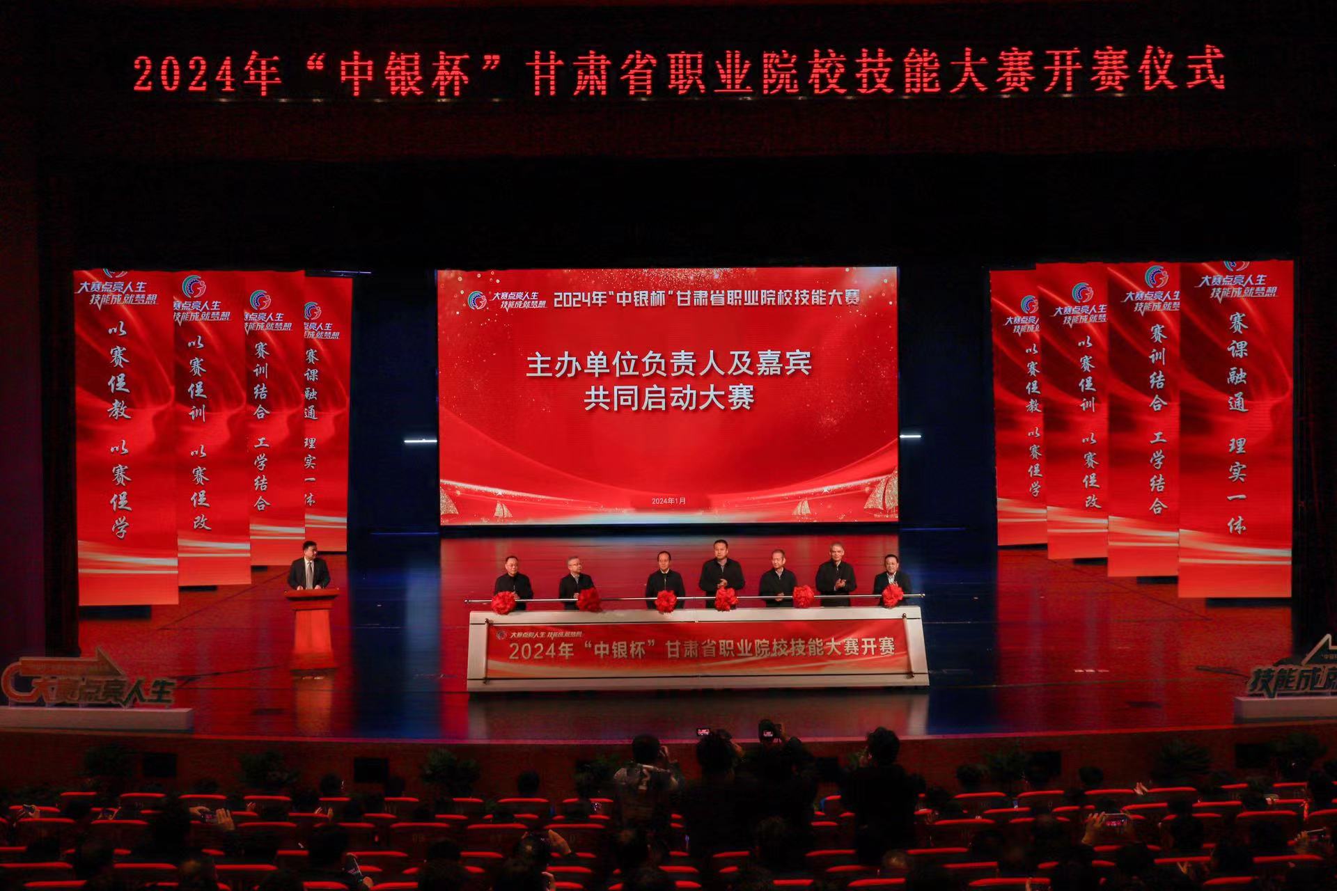 1月6日上午,2024年“中銀杯”甘肅省職業(yè)院校技能大賽開賽儀式在蘭州新區(qū)職教園區(qū)服務(wù)保障中心舉行。教育廳黨組成員、副廳長、大賽組委會副主任白江平,省總工會黨組成員、副主席、大賽組委副主任羅世文,甘肅中華職教社常務(wù)副主任、大賽組委會副主任宋磊,省人社廳二級巡視員李維,省財(cái)政廳二級巡視員李平安,省衛(wèi)建委二級巡視員益瑞淵,大賽支持單位中國銀行甘肅分行副行長胡海濱,蘭州新區(qū)職教園區(qū)服務(wù)保障中心副主任李偉,大賽組委會委員、主辦單位相關(guān)處室、相關(guān)企業(yè)及在蘭各高等職業(yè)院校師生代表在主會場參賽。