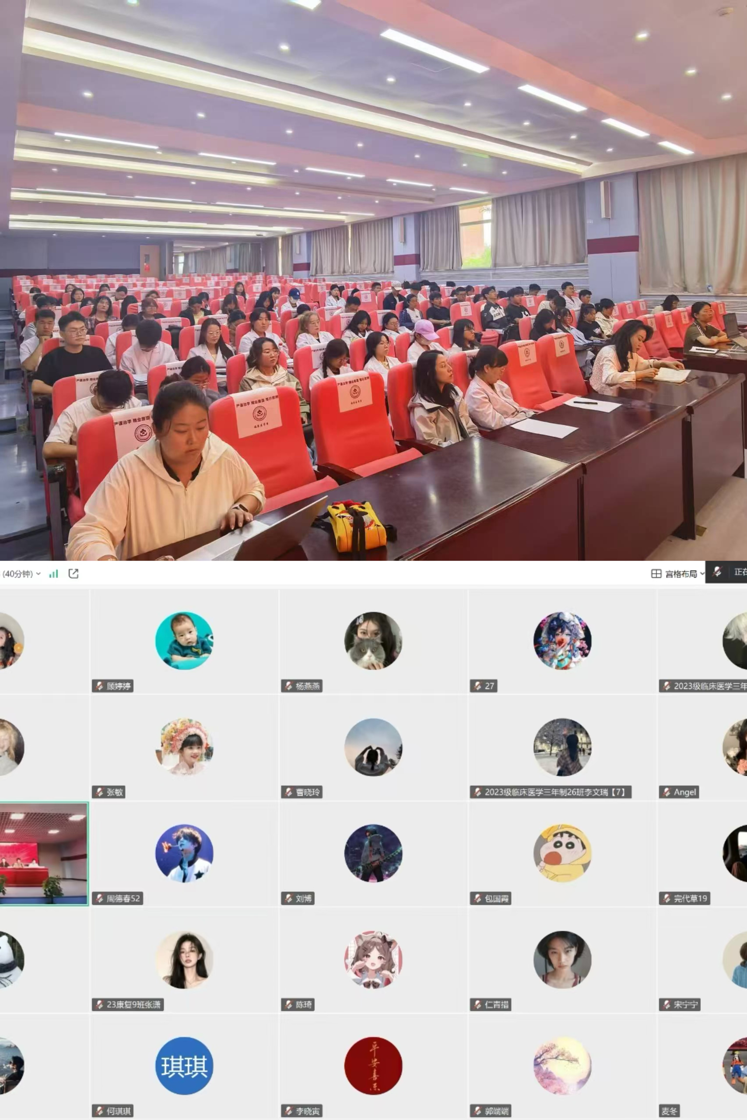 2025年6月24日13:00,臨床醫(yī)學(xué)院召開2026屆實習(xí)生崗前動員教育會議。會議采用線上線下結(jié)合形式,主會場設(shè)在求恩樓一樓報告廳,分會場為各實習(xí)班級教室。學(xué)院領(lǐng)導(dǎo)班子、輔導(dǎo)員、實習(xí)指導(dǎo)教師、實習(xí)點學(xué)生組長及各班10名學(xué)生代表參會,其余實習(xí)生通過騰訊會議觀看。