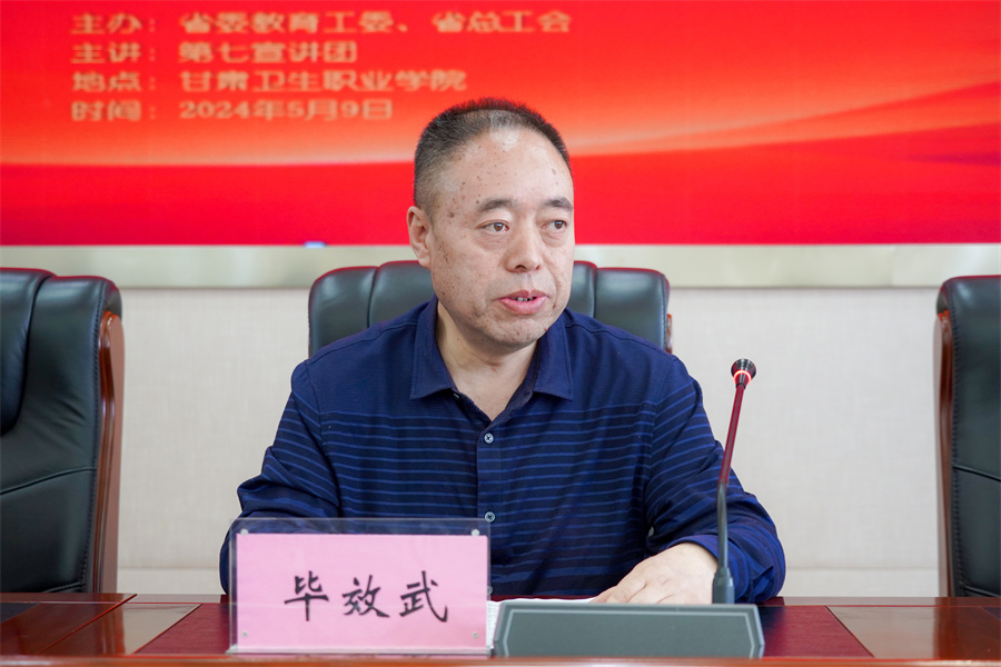 根據(jù)省委教育工委、省總工會有關(guān)要求,5月9日下午,學(xué)校在行政樓8樓會議室舉辦“理響校園·培根鑄魂”全國兩會精神示范性宣講暨“勞模工匠進(jìn)校園”活動。蘭州財(cái)經(jīng)大學(xué)馬克思主義學(xué)院副院長龐慶明、全國勞模管東紅、蘭州財(cái)經(jīng)大學(xué)馬克思主義學(xué)院碩士研究生阿拉帕提·艾爾肯作為省委教育工委、省總工會第七宣講團(tuán)成員為我校師生宣講。活動由學(xué)校黨委副書記畢效武主持。