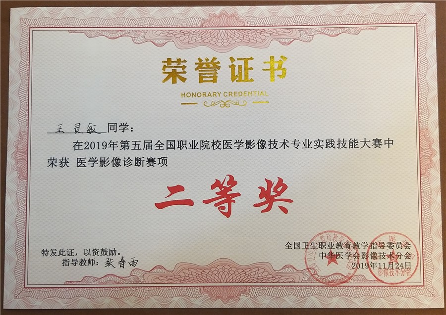 11月22日~25日,由全國衛(wèi)生職業(yè)教育教學(xué)指導(dǎo)委員會(huì)醫(yī)學(xué)影像技術(shù)分委會(huì)主辦、中華醫(yī)學(xué)會(huì)影像技術(shù)分會(huì)與上海健康醫(yī)學(xué)院醫(yī)學(xué)影像學(xué)院協(xié)辦的“新華醫(yī)療杯”第五屆全國職業(yè)院校醫(yī)學(xué)影像技術(shù)專業(yè)實(shí)踐技能大賽在山東淄博舉行。來自全國的62所衛(wèi)生職業(yè)院校的248名學(xué)生參加了比賽。本次比賽共有DR、CT、超聲、影像診斷四個(gè)實(shí)踐技能項(xiàng)目。我校學(xué)生王靈敏(指導(dǎo)教師張春雨)在影像診斷項(xiàng)目中獲二等獎(jiǎng)。