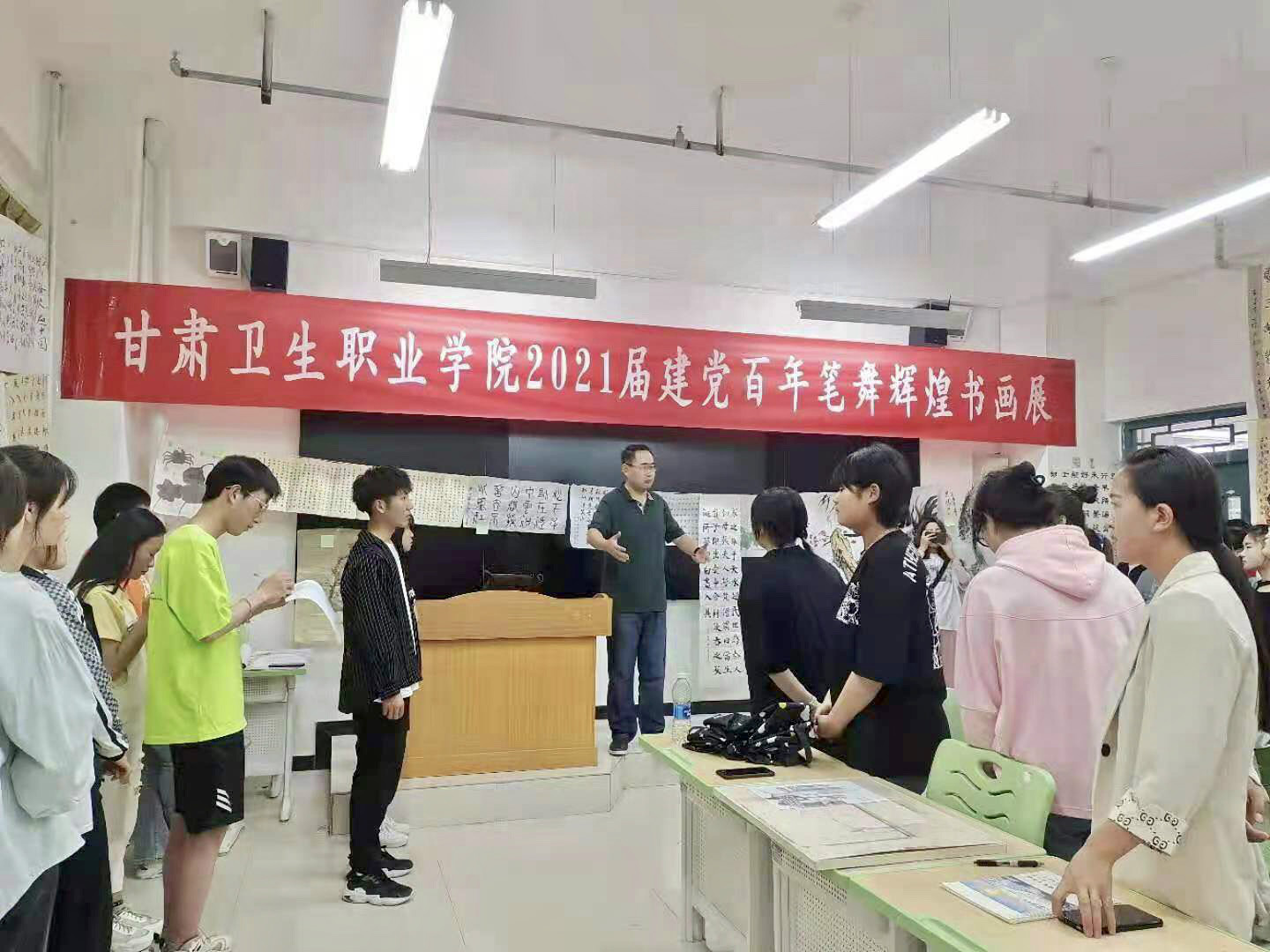 為慶祝中國共產(chǎn)黨成立100周年,弘揚(yáng)中華優(yōu)秀傳統(tǒng)文化,我校書畫協(xié)會(huì)社團(tuán)于2021年6月8日下午在3號(hào)教學(xué)樓階梯教室開展了“建黨百年 筆舞輝煌”書畫展,學(xué)生社團(tuán)全體成員參加了此次活動(dòng)。活動(dòng)共展出書畫作品200余幅,這些作品主題鮮明、內(nèi)涵豐富,既有展現(xiàn)中國共產(chǎn)黨輝煌歷程的作品,也有歌頌抗疫勇士的作品,還有體現(xiàn)祖國大好河山、寄托美好生活的作品等。學(xué)生們用手中的筆和心中的情,以書言志,以畫寄情,生動(dòng)記錄了中國共產(chǎn)黨帶領(lǐng)全國各族人民戰(zhàn)勝外來侵略、建設(shè)美好家園的光輝歷程和偉大成就,從不同角度,抒發(fā)對(duì)黨、對(duì)祖國、對(duì)藝術(shù)、對(duì)時(shí)代的摯愛之情。