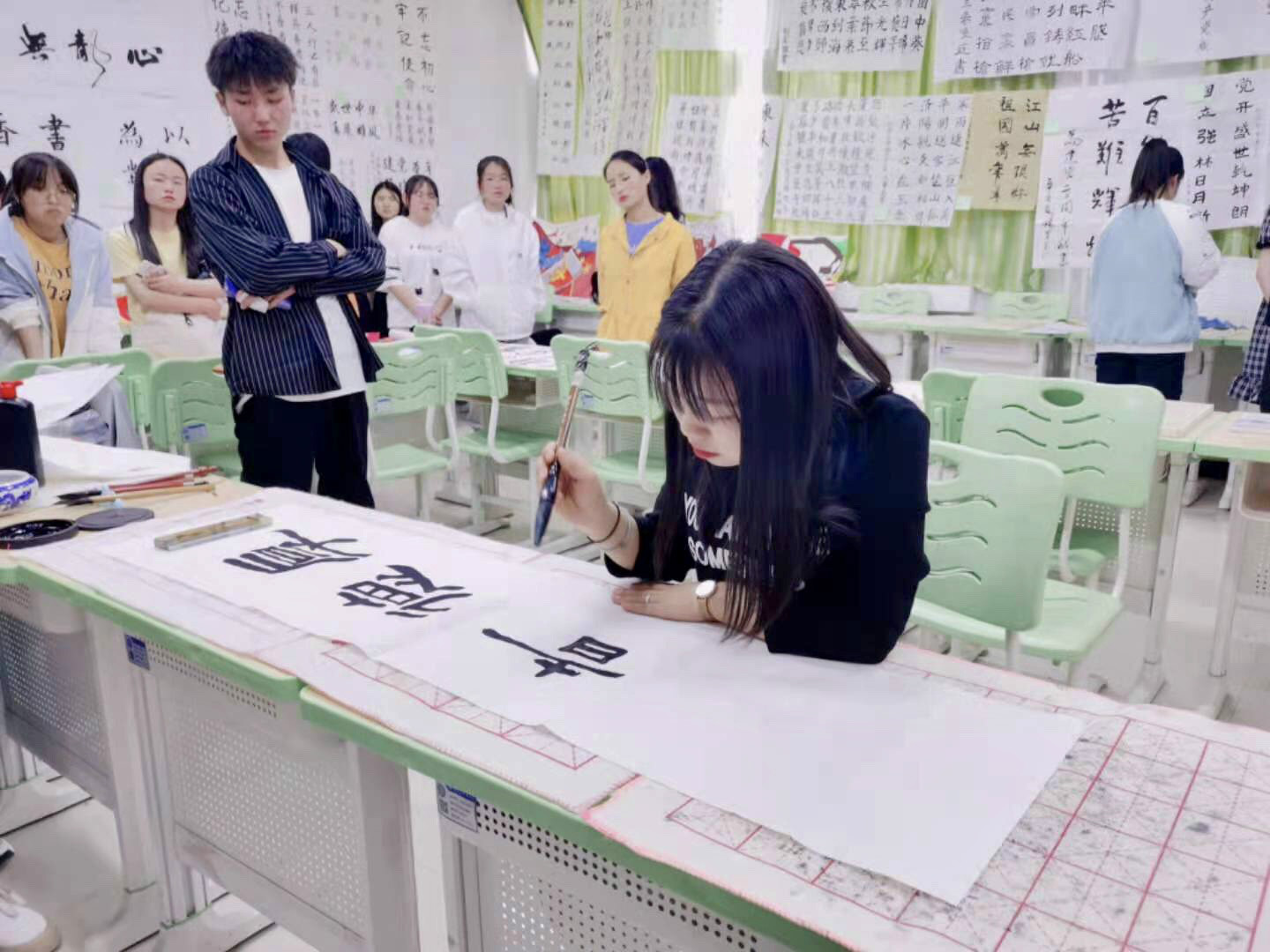 點(diǎn)為側(cè),橫為勒,豎為弩,鉤為趯,提為策,撇為掠,短撇為啄,捺為磔。書法,中華文化之瑰寶。被譽(yù)為“無色而具圖畫的燦爛,無聲而有音樂的和諧,引人欣賞,心曠神怡”。 2021年是建黨100周年,也是“十四五”開局之年,通過本次學(xué)生社團(tuán)活動(dòng)增強(qiáng)了我校青年一代的使命感和責(zé)任感,讓更多人感受到書法繪畫的魅力,豐富了同學(xué)們的大學(xué)生活,促進(jìn)書畫愛好者之間的交流,為大家搭建了展現(xiàn)自我風(fēng)采的平臺(tái),我校學(xué)生社團(tuán)也將繼續(xù)創(chuàng)作具有時(shí)代特色、立意高遠(yuǎn)、創(chuàng)意新穎的文化藝術(shù)作品,展示我們黨在新時(shí)代征程中取得的輝煌成就,表達(dá)我校師生愛黨愛國的情懷,唱響共產(chǎn)黨好、社會(huì)主義好、新時(shí)代好的時(shí)代主旋律。