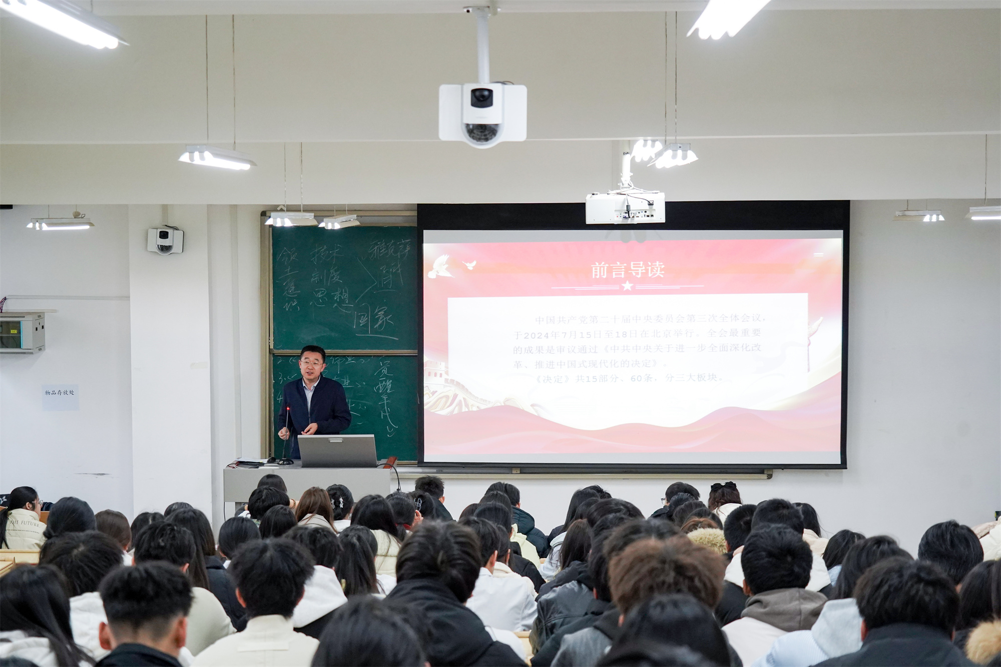 12月5日、6日,黨委書記包磊、校長王建成先后深入課堂,為學生宣講黨的二十屆三中全會精神。