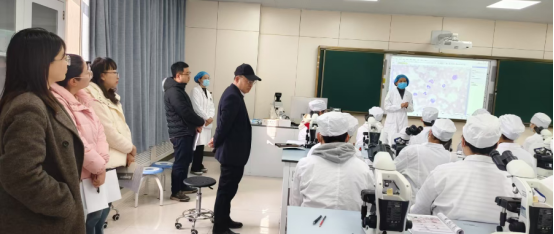 督導小組隨機抽聽了《血液學檢驗》課程“粒細胞的觀察”的理實一體化教學內(nèi)容,此次課程由趙彥玉老師主講、冷木老師實驗輔導。授課教師根據(jù)教學計劃、緊扣教材、合理設置理論實踐環(huán)節(jié),規(guī)范示教、細致講解,注重師生互動反饋,展現(xiàn)了良好的教學能力,但在課堂整體掌控、學生實踐效果反饋等方面仍有提升空間。課后,督導小組與授課教師及時交流反饋,共同分析教學中的優(yōu)點與不足。