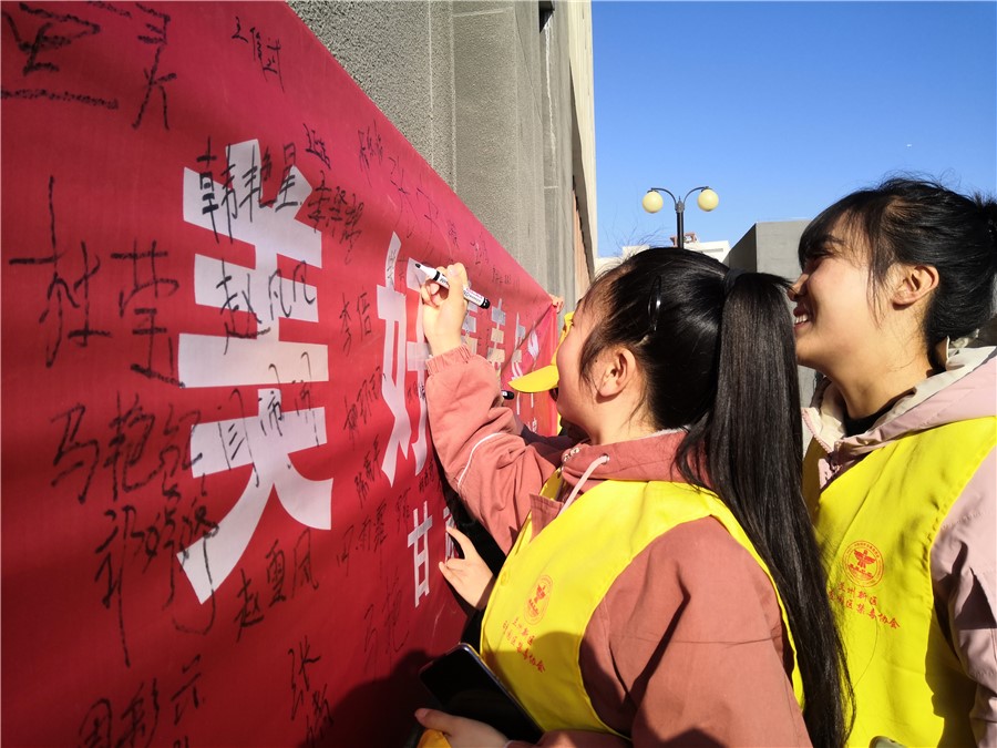 參觀結(jié)束后各位志愿者在李鵬飛老師的帶領(lǐng)下莊嚴(yán)宣誓,并在 “同心遠(yuǎn)離毒品危害、共享美好青春年華”的橫幅上簽上了自己的名字。
