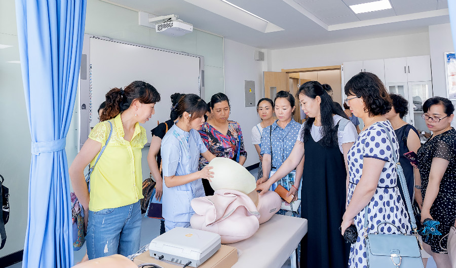 在開展的護(hù)理技能操作規(guī)范化示教活動(dòng)中,我校今年參加全國護(hù)理技能大賽并獲獎(jiǎng)的常菲菲和楊國靜兩名同學(xué)分別展示了靜脈留置針輸液和心肺復(fù)蘇項(xiàng)目,她們精湛的技藝、嫻熟的操作體現(xiàn)了學(xué)校護(hù)理專業(yè)學(xué)生良好的綜合素質(zhì),給與會(huì)人員留下了深刻的印象。在參觀了學(xué)校新建成的臨床護(hù)理實(shí)訓(xùn)中心后,與會(huì)專家和主任們對(duì)我校良好的教學(xué)環(huán)境、現(xiàn)代的信息化教學(xué)手段及完善的實(shí)訓(xùn)設(shè)備嘖嘖稱贊。