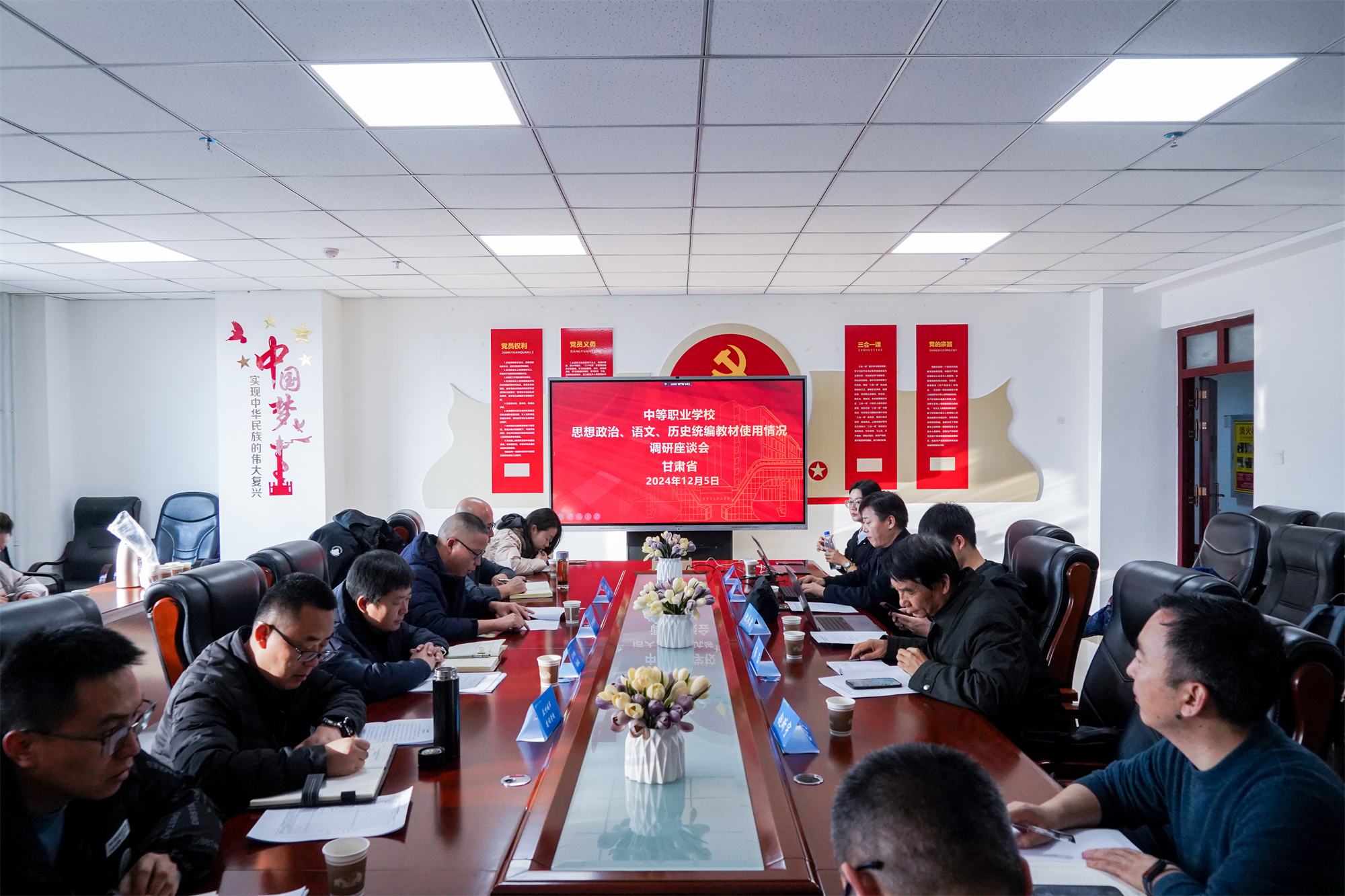 在辦公樓315 會議室,調(diào)研組專家分別開展了面向教育行政部門工作人員的座談會和面向職業(yè)院校教材管理人員的座談會。學(xué)校黨委副書記畢效武對韓江萍主任及趙昕宇副處長一行表示熱烈歡迎,蘭州資源環(huán)境職業(yè)技術(shù)大學(xué)、甘肅衛(wèi)生職業(yè)學(xué)院、甘肅財貿(mào)職業(yè)技術(shù)學(xué)院、蘭州現(xiàn)代職業(yè)技術(shù)學(xué)院教材管理負責人在會上就國家規(guī)劃教材的管理、指導(dǎo)、選用、參編、監(jiān)測、輿情、意見及建議等方面進行了匯報。在辦公樓415會議室同期召開了中等職業(yè)學(xué)校思想政治、語文、歷史統(tǒng)編教材使用情況調(diào)研座談會,蘭州市教育局、蘭州新區(qū)教體局、蘭州市衛(wèi)生學(xué)校、蘭州市城市建設(shè)學(xué)校教材管理負責人參加了座談。