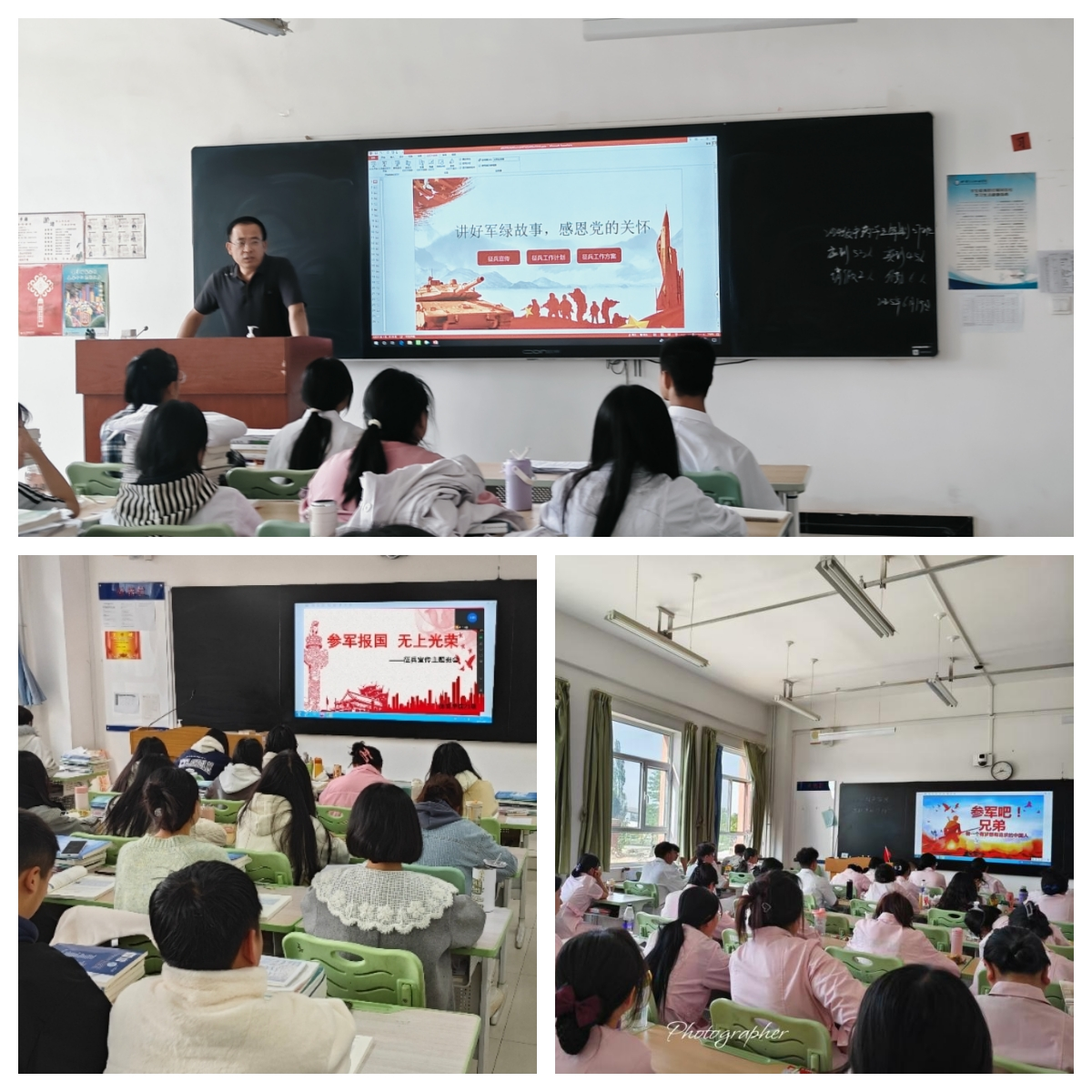 為進一步落實征兵工作要求,各二級學(xué)院也積極行動起來,在“征兵宣傳月”期間開展了豐富多彩的征兵宣傳活動。在征兵宣傳主題班會上,輔導(dǎo)員們化身 “征兵宣傳員”,通過播放精彩的軍旅視頻、詳細講解政策手冊,向同學(xué)們介紹了應(yīng)征入伍的條件、流程、時間節(jié)點及優(yōu)惠政策。生動的畫面和深入的解讀,讓同學(xué)們對參軍入伍有了更清晰的認識,消除了心中的疑惑和顧慮。互動環(huán)節(jié)中,同學(xué)們踴躍提問,不少同學(xué)當(dāng)場表示對參軍產(chǎn)生了濃厚興趣。