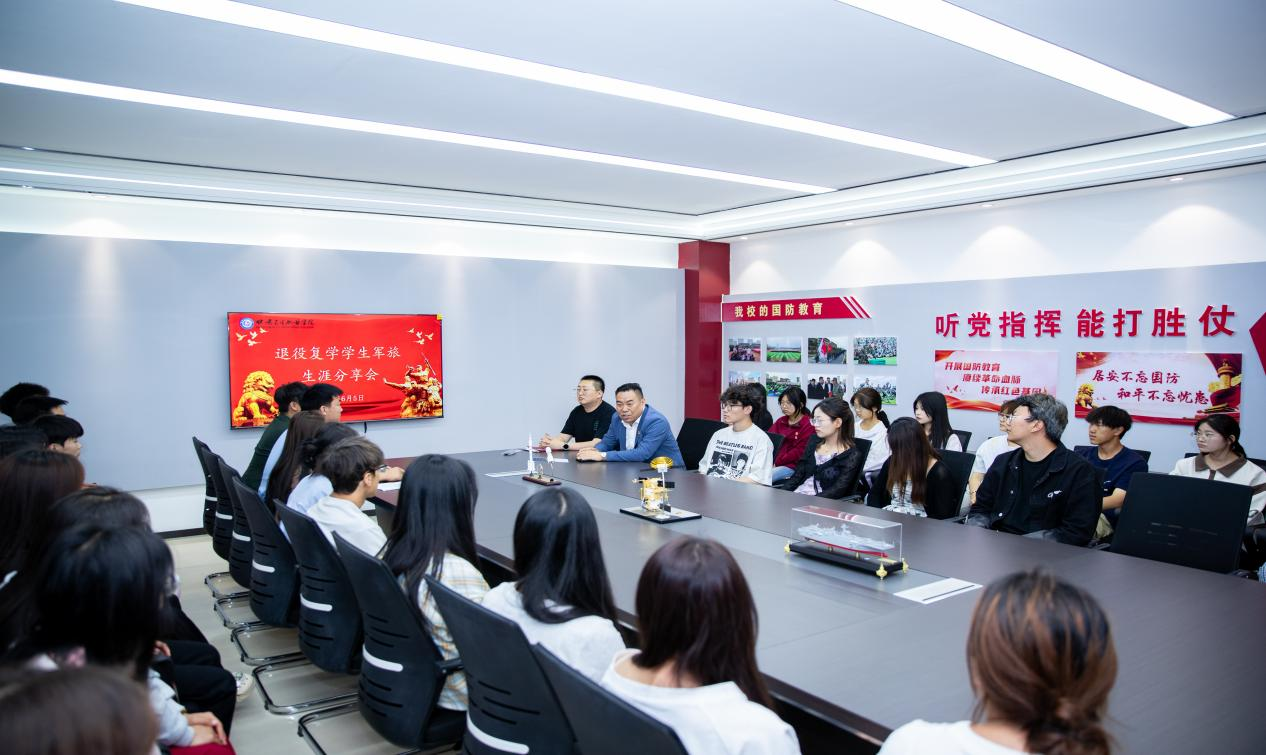 包磊書記在會上寄語廣大學(xué)子,希望大家以這些優(yōu)秀退役復(fù)學(xué)學(xué)生為榜樣,將青春熱血融入國防事業(yè)。此次分享會為同學(xué)們搭建了一個與退役士兵近距離交流的平臺,現(xiàn)場氣氛熱烈,點燃了學(xué)子們參軍報國的壯志豪情,也在校園中營造出了崇軍尚武的濃厚氛圍。