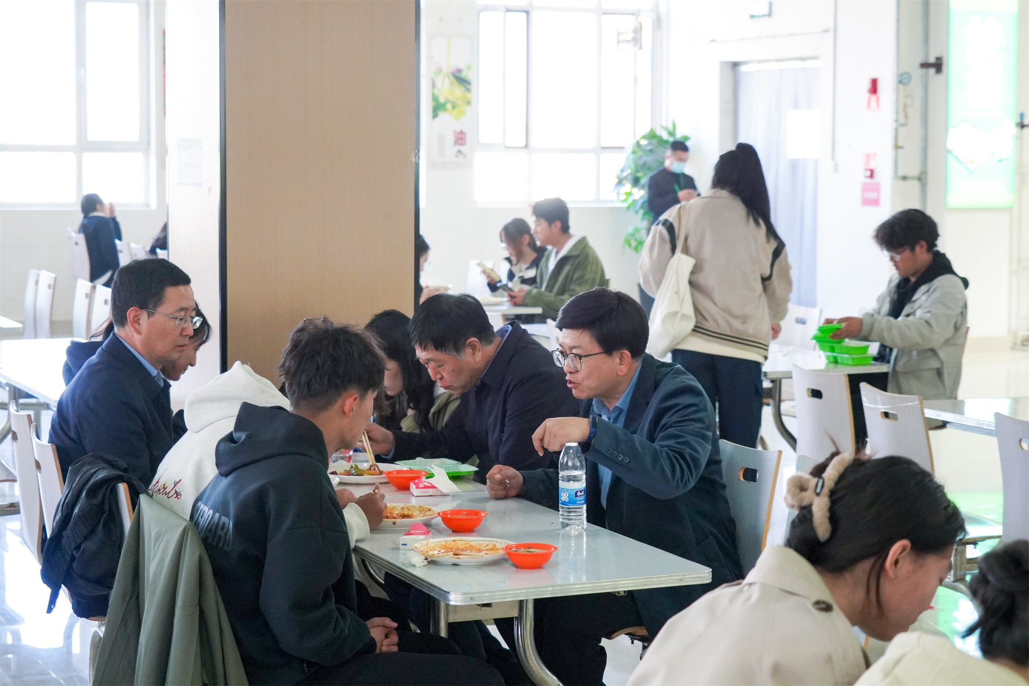 王建成校長一行認真查看了食堂的環(huán)境衛(wèi)生、食材品種,向食堂管理人員了解食堂的經(jīng)營情況,食品安全、消防安全各項措施落實情況。他強調(diào),食品安全是學(xué)校安全工作的重中之重,有關(guān)部門要加大監(jiān)督監(jiān)管力度,食堂經(jīng)營主體要切實履行主體責(zé)任,強化日常管理,讓學(xué)生在學(xué)校食堂能夠吃得放心、吃得安心。用餐期間,王建成校長與同學(xué)們親切交流,詳細了解同學(xué)們對食堂飯菜的價格、質(zhì)量、種類和服務(wù)質(zhì)量等方面的意見和建議,叮囑同學(xué)們要均衡飲食、注意營養(yǎng)搭配,養(yǎng)成良好的飲食和衛(wèi)生習(xí)慣,保持健康身體,勤奮學(xué)習(xí),不負韶華。