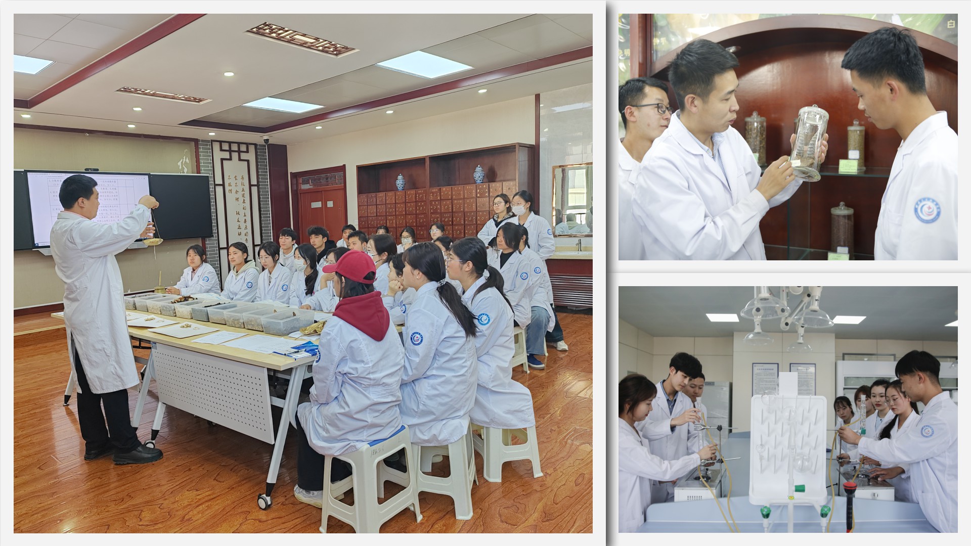 中藥學(xué)專(zhuān)業(yè)建設(shè)有中藥標(biāo)本館,有麝香等貴重標(biāo)本50余種、臘葉標(biāo)本400多種、浸制標(biāo)本500個(gè)、生藥標(biāo)本5000余瓶,并建設(shè)有中藥鑒定實(shí)訓(xùn)中心(中藥性狀鑒定實(shí)訓(xùn)室、中藥理化鑒定實(shí)訓(xùn)室和中藥顯微鑒定實(shí)訓(xùn)室)、中藥炮制實(shí)訓(xùn)中心、中藥制劑實(shí)訓(xùn)中心、中藥藥理實(shí)訓(xùn)中心、實(shí)體藥房實(shí)訓(xùn)中心、模擬生產(chǎn)實(shí)訓(xùn)中心等,設(shè)備先進(jìn)、齊全,集教學(xué)、培訓(xùn)、職業(yè)技能鑒定和科普教育于一體,滿(mǎn)足中藥專(zhuān)業(yè)的校內(nèi)實(shí)踐教學(xué)。