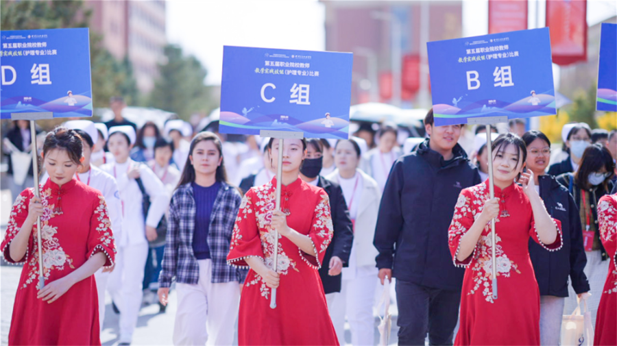 王揚南在講話中強調(diào),《教育強國建設(shè)規(guī)劃綱要》明確提出要構(gòu)建素質(zhì)精良的教師隊伍體系,建設(shè)高素質(zhì)專業(yè)化教師隊伍,筑牢教育強國根基。面對我國老齡化加劇、智慧醫(yī)療發(fā)展等形勢,護理教師作為“健康守門人”的培育者,必須緊跟行業(yè)前沿,既要做理論基礎(chǔ)扎實、傳授知識的“經(jīng)師”,又要做實踐技能嫻熟、深耕臨床的“技師”,更要做有人文溫度、塑造職業(yè)精神的“人師”。他希望各參賽院校通過比賽打造一支“有理想信念、有道德情操、有扎實學(xué)識、有仁愛之心”的護理專業(yè)金師隊伍,為服務(wù)國家戰(zhàn)略需求和經(jīng)濟社會發(fā)展需要培養(yǎng)新時代高質(zhì)量護理人才奠定堅實基礎(chǔ)。