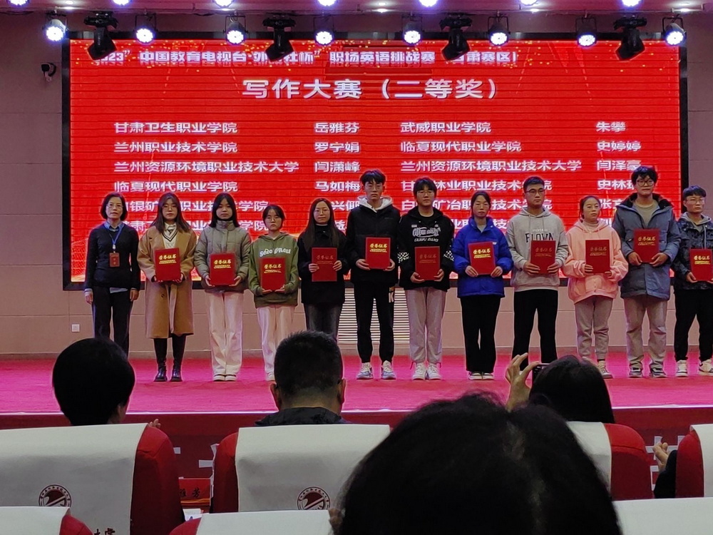 學(xué)校在2023年“中國教育電視臺·外研社杯”職場英語挑戰(zhàn)賽(甘肅賽區(qū)復(fù)賽)中喜獲佳績