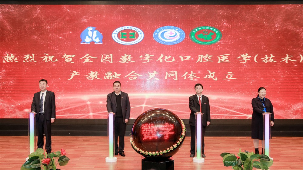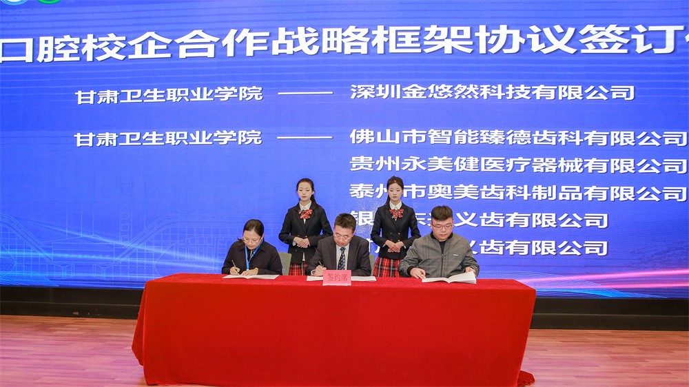 隨后,王建成校長、劉繪經(jīng)理、羅文平董事長現(xiàn)場簽訂口腔校企合作戰(zhàn)略框架協(xié)議。領(lǐng)導(dǎo)來賓共同按下啟動鍵,為全國數(shù)字化口腔醫(yī)學(xué)(技術(shù))產(chǎn)教融合共同體成立揭幕。