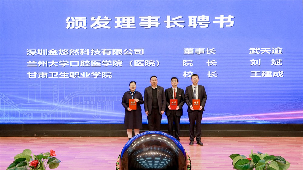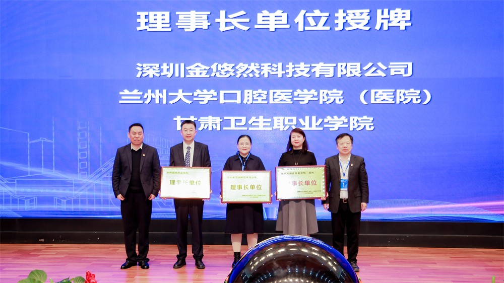 隨后,與會人員審議了全國數(shù)字化口腔醫(yī)學(xué)(技術(shù))產(chǎn)教融合共同體章程(審議稿)及建設(shè)規(guī)劃(2024~2026年),選舉深圳金悠然科技有限公司、蘭州大學(xué)口腔醫(yī)學(xué)院、甘肅衛(wèi)生職業(yè)學(xué)院為理事長單位,西北民族大學(xué)口腔醫(yī)學(xué)院等28家單位為副理事長單位,遼東學(xué)院等50家單位為常務(wù)理事單位,現(xiàn)場舉行了共同體理事單位授牌儀式及共同體理事長聘任儀式,王建成校長、劉斌院長、劉繪經(jīng)理分別代表共同體理事長單位發(fā)言。