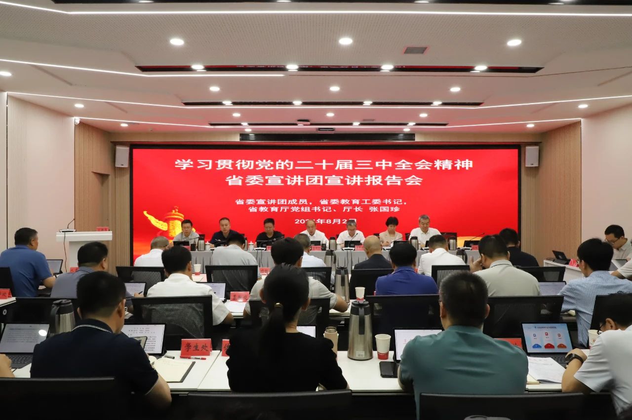 近日,學習貫徹黨的二十屆三中全會精神省委宣講團在教育系統(tǒng)宣講。省委宣講團成員,省委教育工委書記,省教育廳黨組書記、廳長張國珍作宣講報告。學校在五里鋪暑期辦公點設(shè)分會場,在家校領(lǐng)導、各黨總支書記、黨務(wù)部門負責人參加宣講會。