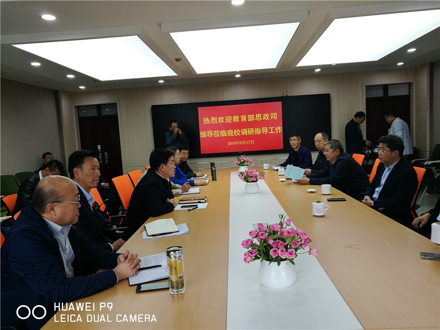 2018年9月17日下午,根據(jù)教育部關(guān)于對(duì)高校思政工作開(kāi)展調(diào)研工作的安排,教育部思想政治工作司副司長(zhǎng)張文斌率教育部調(diào)研組一行4人在省教育廳副廳長(zhǎng)趙凱、省高校工委思政處處長(zhǎng)溫攀璽和蘭州新區(qū)職教園區(qū)管委會(huì)領(lǐng)導(dǎo)的陪同下,對(duì)我院思政工作開(kāi)展情況進(jìn)行了實(shí)地調(diào)研。學(xué)院黨委書(shū)記姜德民、副校長(zhǎng)任世偉及黨辦、宣傳部、學(xué)工部等相關(guān)部門(mén)負(fù)責(zé)人參加了調(diào)研活動(dòng)。