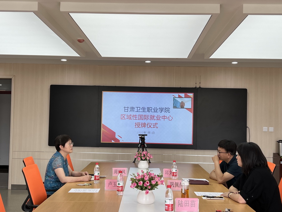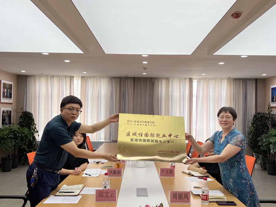 7月1日,“區(qū)域性國際就業(yè)中心”授牌儀式在甘肅衛(wèi)生職業(yè)學(xué)院行政辦公樓615會議室以線上視頻形式隆重舉行。日本醫(yī)療法人瑞穗會集團(tuán)理事長高橋啓文、日本醫(yī)療法人瑞穗會集團(tuán)事務(wù)長西本雅博、日本益事協(xié)同組合事務(wù)局長朝日純一,學(xué)校副校長邱文云、國際交流中心主任周麗鳳、臨床護(hù)理學(xué)院副院長盧玉彬、國際交流中心副主任鞏佩顏以及相關(guān)人員參加了儀式。儀式由日本益事協(xié)同組合中國代表和唯主持。