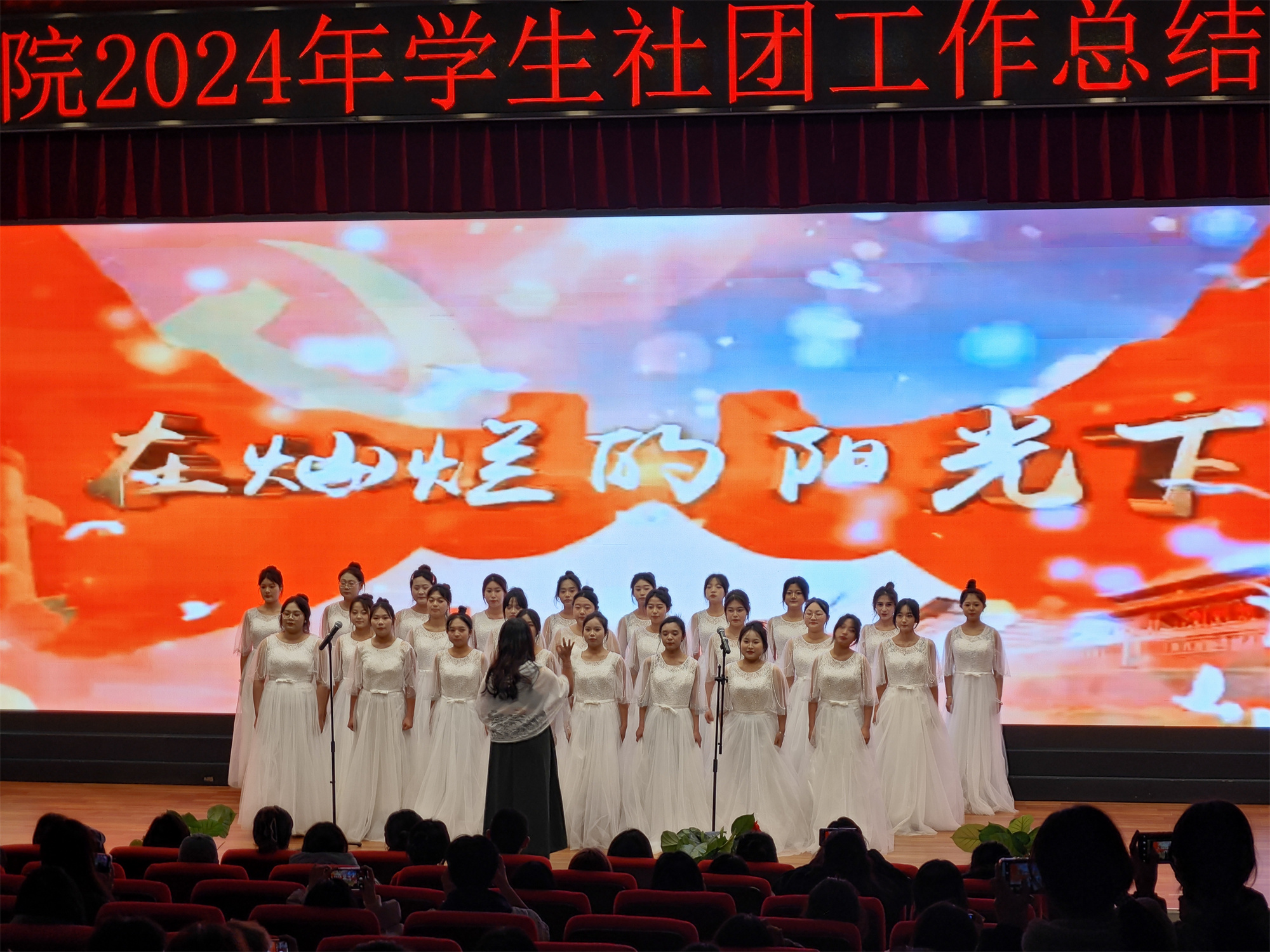 社團展演在璀璨的燈光下激蕩著活力四射的火花,校舞蹈隊的敦煌舞《天宮伎樂》、合唱團的《在燦爛陽光下》、器樂社團的古箏演奏《山丹丹開花紅艷艷》和紅色文化宣講社團的舞臺劇《赤伶》贏得了現(xiàn)場的陣陣掌聲,為總結(jié)大會增色不少。