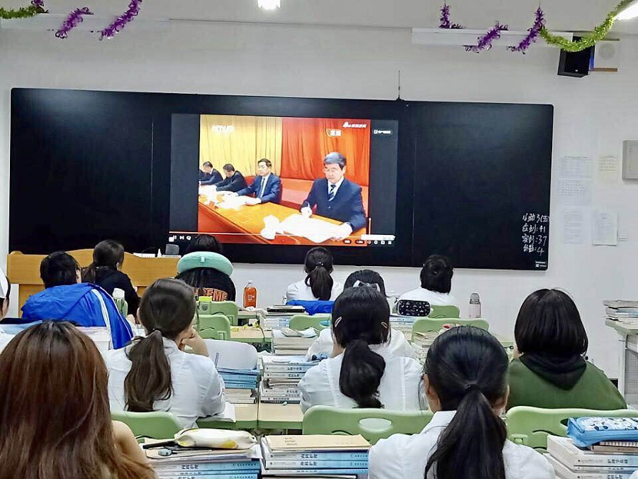 5月20日晚,在一號(hào)教學(xué)樓報(bào)告廳,100多名團(tuán)委干部齊聚一堂,集中觀看“紀(jì)念五四運(yùn)動(dòng)100周年大會(huì)”盛況;同一時(shí)間,在校各團(tuán)支部也在組織團(tuán)員集中觀看“紀(jì)念五四運(yùn)動(dòng)100周年大會(huì)”視頻,認(rèn)真觀看習(xí)總書記在五四運(yùn)動(dòng)100周年大會(huì)上的重要講話。