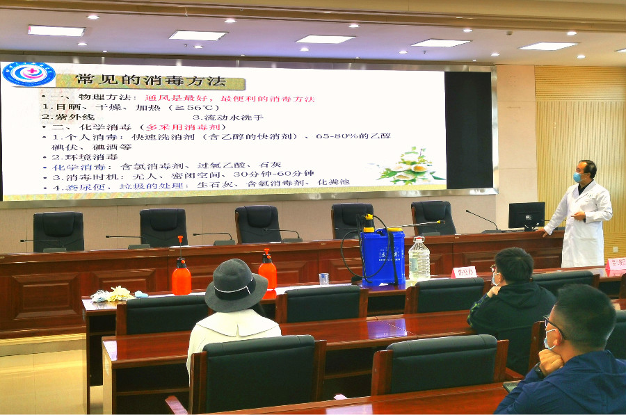 附屬醫(yī)院門診部付亞平主任對(duì)校園的消毒工作進(jìn)行了培訓(xùn)和指導(dǎo),就教室、實(shí)訓(xùn)室、計(jì)算機(jī)房、學(xué)生宿舍、食堂、辦公室、衛(wèi)生間等重點(diǎn)區(qū)域消毒如何選擇消毒液、怎樣配比、如何噴灑、消毒后如何處理等方面進(jìn)行了全面、詳細(xì)的講解。