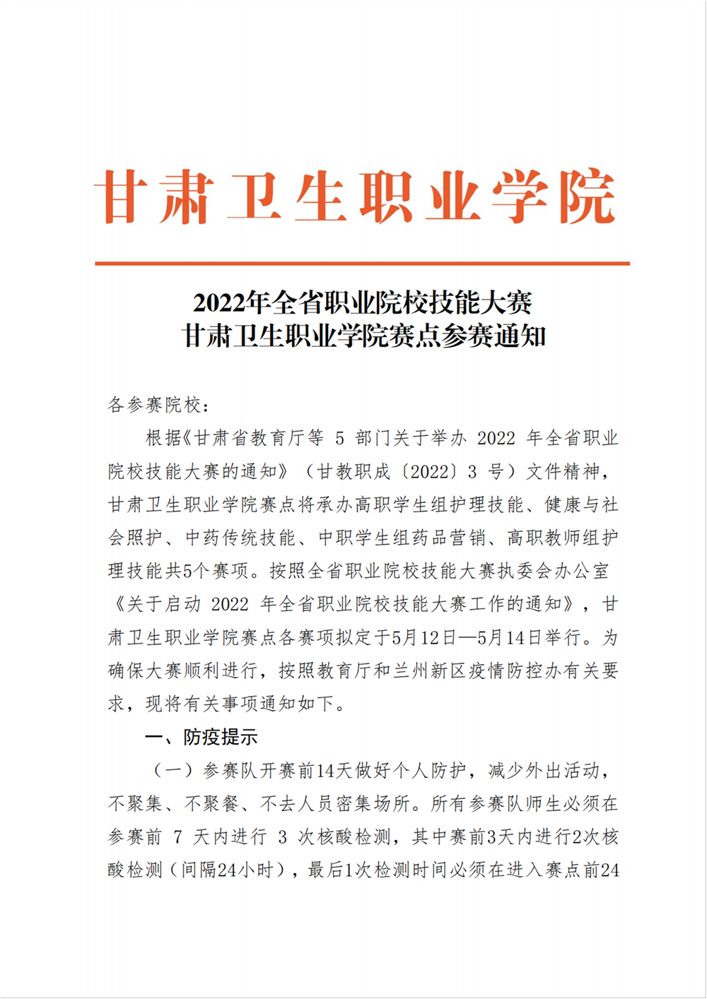 2022年全省職業(yè)院校技能大賽甘肅衛(wèi)生職業(yè)學(xué)院賽點(diǎn)參賽通知