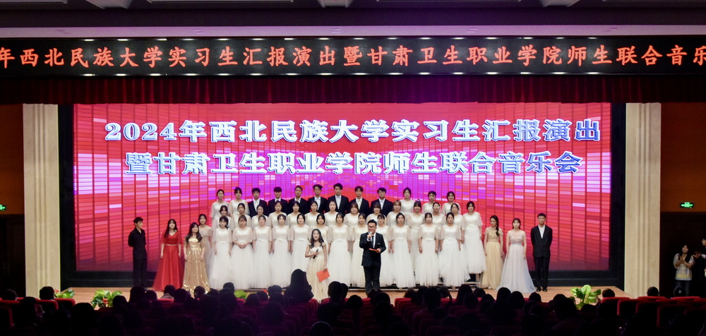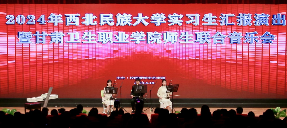 為進一步豐富校園文化生活,促進大學生美育教育,提高全校師生藝術(shù)素養(yǎng),集中展示學校教工管樂隊、大學生藝術(shù)團的學習訓練成績以及西北民族大學音樂學院學生的實習成果,4月18日晚,校團委舉辦了“2024年西北民族大學實習生匯報演出暨甘肅衛(wèi)生職業(yè)學院師生聯(lián)合音樂會”,教工管樂隊與大學生藝術(shù)團的部分成員和西北民族大學音樂學院實習生在一號教學樓學術(shù)報告廳給師生帶來了一場音樂盛宴,學校青年教師及優(yōu)秀學生代表400余人到場觀看。