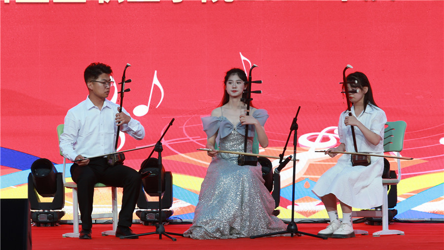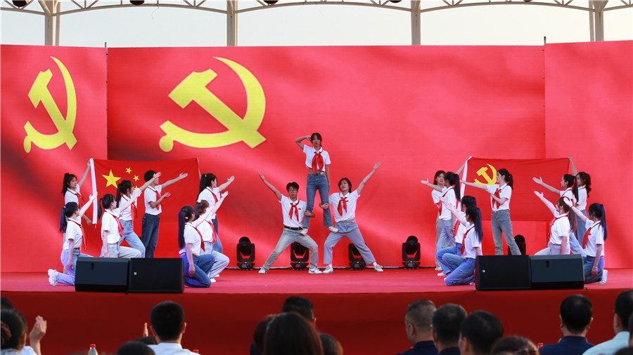晚會(huì)用豐富多彩的表演形式,弘揚(yáng)偉大建黨精神,謳歌新時(shí)代、唱響新征程,既有優(yōu)美的舞蹈《唱支山歌給黨聽(tīng)》《紙扇書(shū)生》《小城謠》《奔跑的青春》《洗衣舞》《幻想童話》《醉春風(fēng)》《藏家兒女心向黨》《萬(wàn)疆》《鳴沙踏歌》《綻放》,又有深情的朗誦《黨的華章》《我深深愛(ài)戀的祖國(guó)》,動(dòng)人的合唱《強(qiáng)國(guó)有我》《媽媽教我一支歌》《七律·長(zhǎng)征》,還有精彩的二胡齊奏《賽馬》。學(xué)生們載歌載舞,用最優(yōu)美的舞蹈、動(dòng)聽(tīng)的歌聲表達(dá)了對(duì)黨和祖國(guó)的熱愛(ài)之情,用最青春的聲音表達(dá)對(duì)老師的愛(ài)、對(duì)學(xué)校的懷戀。