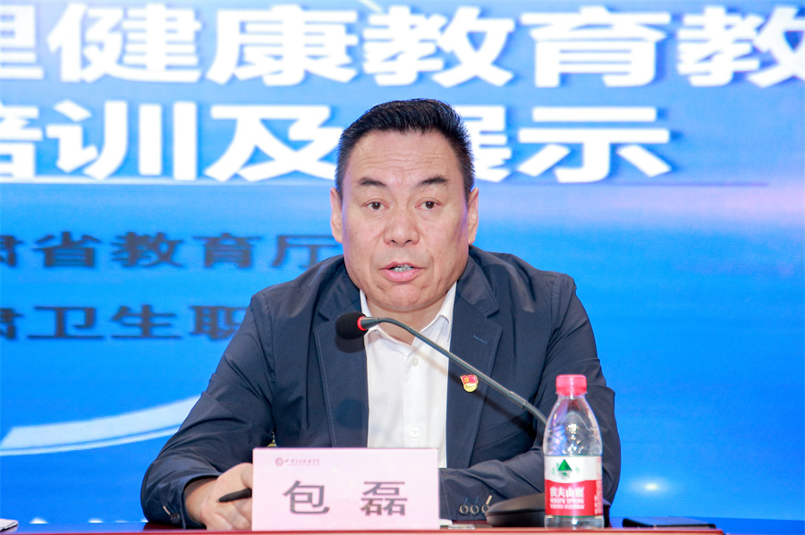 包磊代表學(xué)校向受邀專家及全體學(xué)員表示熱烈的歡迎,簡要介紹了學(xué)校基本情況、辦學(xué)成果以及心理健康教育中心建設(shè)情況。他表示,學(xué)校很榮幸承擔全省中小學(xué)心理健康教育教師綜合技能培訓(xùn)及展示工作,作為培訓(xùn)基地,學(xué)校上下高度重視、充分準備,全力保障,確保高質(zhì)量完成培訓(xùn)任務(wù),希望參會學(xué)員學(xué)業(yè)順利、生活愉快,預(yù)祝本次培訓(xùn)活動圓滿完成。