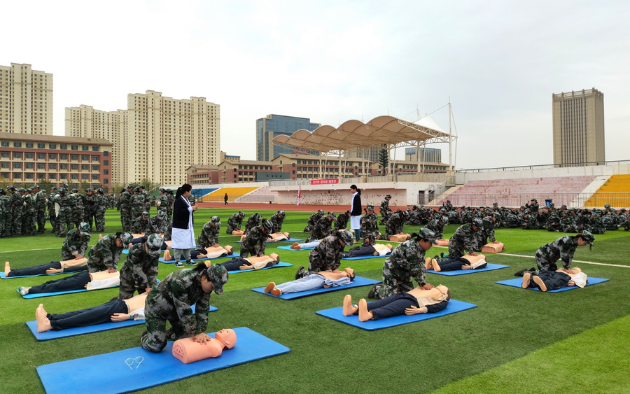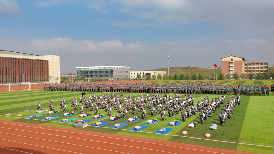 本次軍訓(xùn),學(xué)校以《普通高等學(xué)校軍事課教學(xué)大綱》為訓(xùn)練標(biāo)準(zhǔn),在進(jìn)一步加強(qiáng)三大條令的訓(xùn)練、徒步拉練、紅色歌曲演唱、基本拳術(shù)訓(xùn)練等科目訓(xùn)練外,利用學(xué)校專(zhuān)業(yè)優(yōu)勢(shì),開(kāi)展了心肺復(fù)蘇和戰(zhàn)傷救護(hù)訓(xùn)練,增加了學(xué)生應(yīng)急逃生和基本消防技能訓(xùn)練。把實(shí)用、有用、管用的基本技能融入訓(xùn)練課程,努力為國(guó)防事業(yè)培養(yǎng)合格的后備力量。