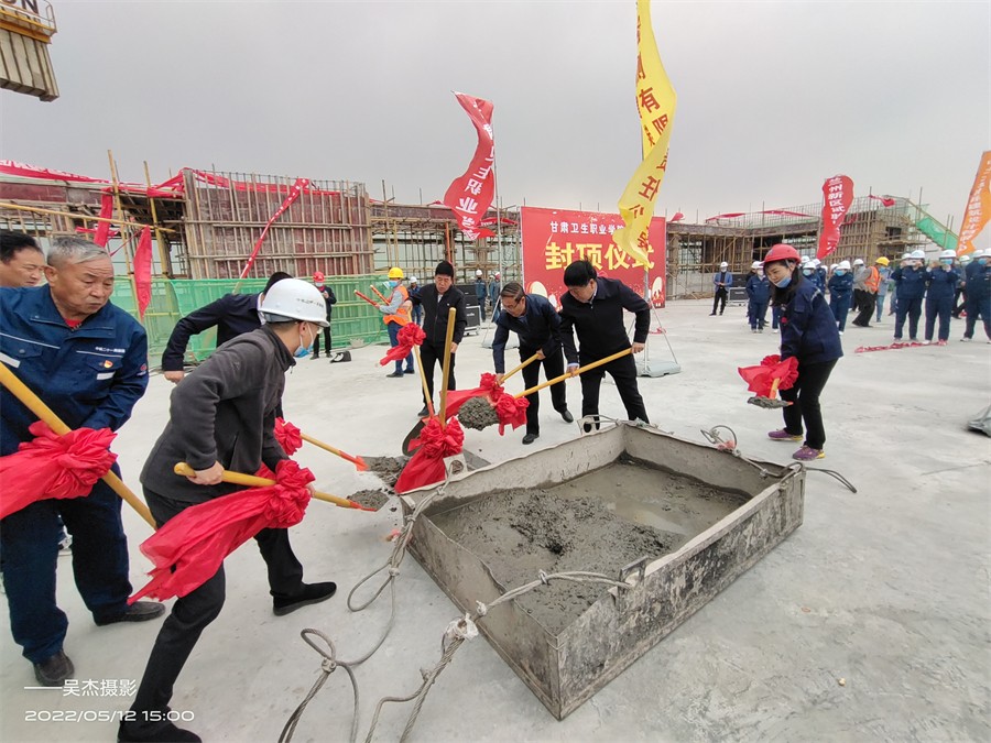5月12日下午,甘肅衛(wèi)生職業(yè)學(xué)院教學(xué)樓及學(xué)生宿舍樓建設(shè)項(xiàng)目在新建教學(xué)樓8樓隆重舉行封頂儀式,學(xué)校黨委書記姜德民、黨委副書記劉生肸,學(xué)校副處級(jí)干部、中層干部和各參建單位的代表、工作人員等100余人參加了封頂儀式,封頂儀式由副校長(zhǎng)高博主持。