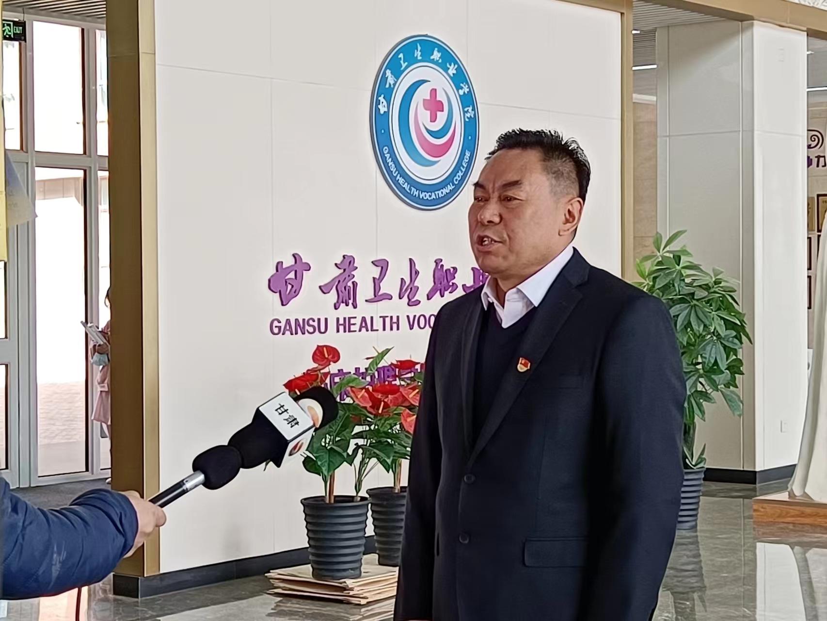 會(huì)后,學(xué)校黨委書記包磊接受了甘肅省電視臺(tái)記者的采訪。采訪中,包磊書記分享了對(duì)本次學(xué)習(xí)的感受與思考,介紹了學(xué)校開(kāi)展主題教育的思路方法,并就學(xué)校衛(wèi)生職業(yè)教育事業(yè)改革與發(fā)展闡述了相關(guān)構(gòu)想。