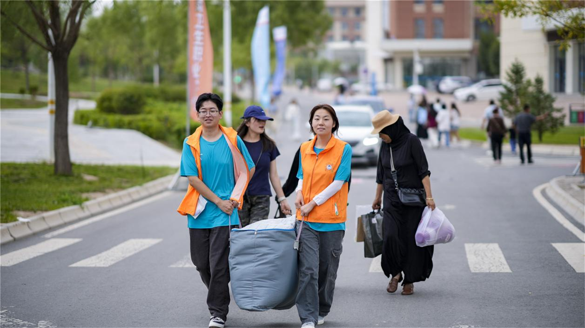 在學(xué)校統(tǒng)籌部署下,各部門、二級(jí)學(xué)院群策群力、通力合作,用心用情地做好各項(xiàng)服務(wù),全力營(yíng)造舒心、暖心、熱心、便捷的報(bào)到環(huán)境,確保新生報(bào)到安全有序進(jìn)行。全校師生以飽滿昂揚(yáng)的風(fēng)貌積極參與到迎新工作中,迎接來自五湖四海的莘莘學(xué)子。由團(tuán)委及學(xué)生會(huì)干部、志愿者協(xié)會(huì)組成的迎新志愿者團(tuán)隊(duì)穿梭在各個(gè)點(diǎn)位,行李轉(zhuǎn)運(yùn)、報(bào)到指引、校園講解,為每一個(gè)抵校學(xué)生熱情引導(dǎo)、耐心講解、幫提行李,用熱情與笑容為大家提供服務(wù),新媒體中心的同學(xué)們用相機(jī)記錄迎新美好瞬間,幫助新生們留下美好的回憶,黃色、藍(lán)色、黑色馬甲成了迎新現(xiàn)場(chǎng)一道亮麗的風(fēng)景線。