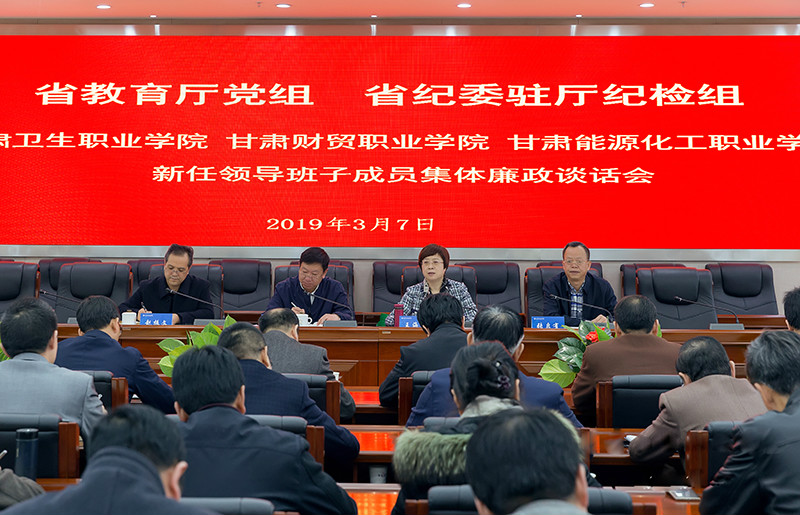 省教育廳黨組、省紀(jì)委駐廳紀(jì)檢組對甘肅衛(wèi)生職業(yè)學(xué)院、甘肅財(cái)貿(mào)職業(yè)學(xué)院、甘肅能源化工職業(yè)學(xué)院新任領(lǐng)導(dǎo)班子成員進(jìn)行集體廉政談話發(fā)布時(shí)間:2019-03-08