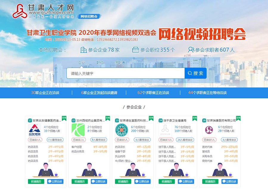我校2020年春季網(wǎng)絡(luò)視頻雙選會(huì)在“甘肅人才網(wǎng)”成功舉辦發(fā)布時(shí)間:2020-05-15