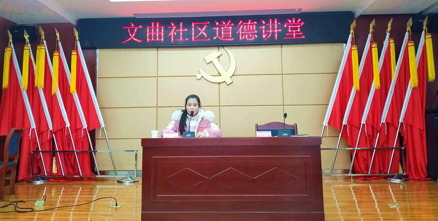 學(xué)校優(yōu)秀共青團員張蓉受邀赴文曲社區(qū)參加道德講堂活動發(fā)布時間:2019-12-06