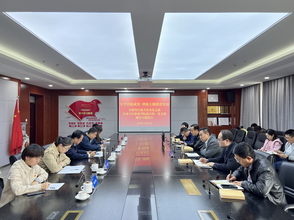分享經(jīng)驗(yàn)成果 增強(qiáng)主題教育實(shí)效——省教育廳機(jī)關(guān)黨委黨支部與甘肅衛(wèi)生職業(yè)學(xué)院機(jī)關(guān)第一黨支部聯(lián)合開(kāi)展主題黨日活動(dòng)發(fā)布時(shí)間:2023-10-27