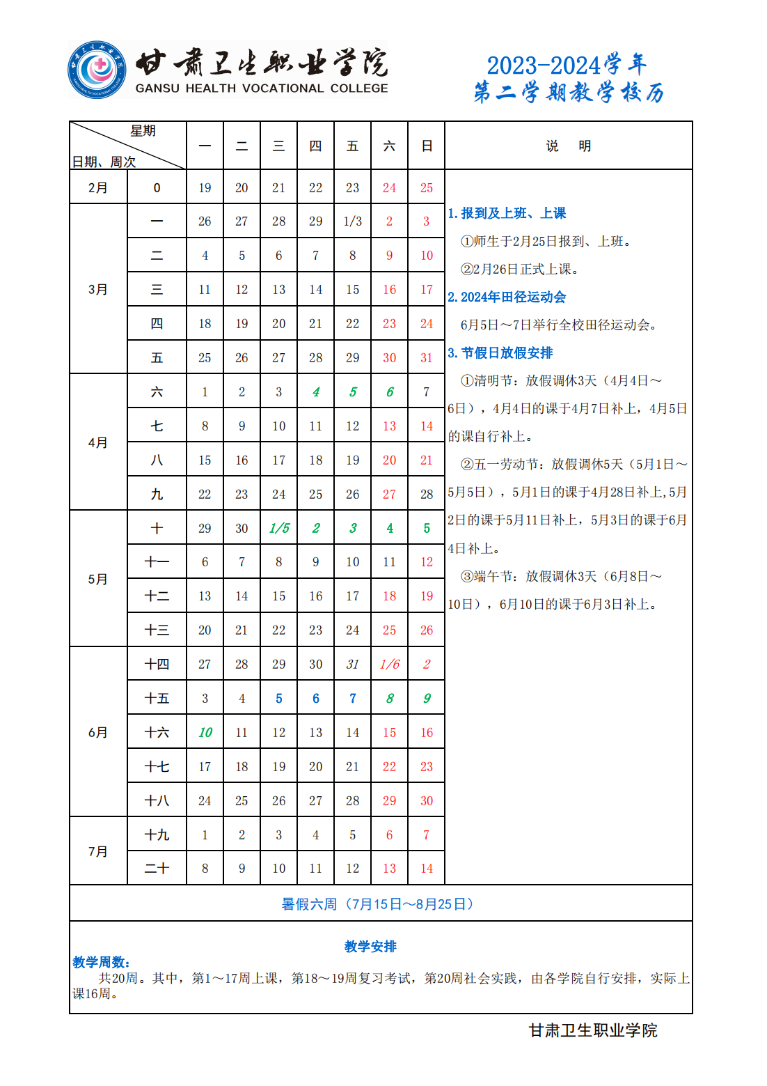 甘肅衛(wèi)生職業(yè)學(xué)院2023-2024學(xué)年第二學(xué)期教學(xué)校歷發(fā)布時(shí)間:2024-01-12